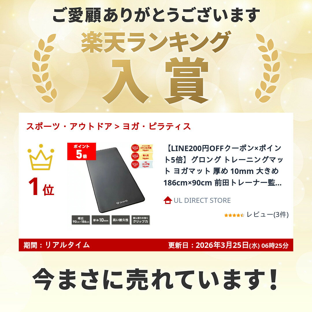 店舗名(DABADAストア 楽天市場店)おかげさまで多くの方に選ばれています! 累計販売数348,800枚突破! ポイント1:厚さ10mm クッション性が高く、膝や腰などの負担を軽減! ポイント2:のびのび使えるワイドサイズ 横になって行うトレーニングにも適した横幅180cmマット! ポイント3:メリットが多いNBR素材 寒い時期にうつ伏せになってもお腹の冷えが気にならない! ポイント4:撥水仕様 水に強い素材なので、汗などで汚れてもタ...
