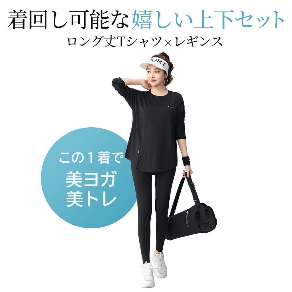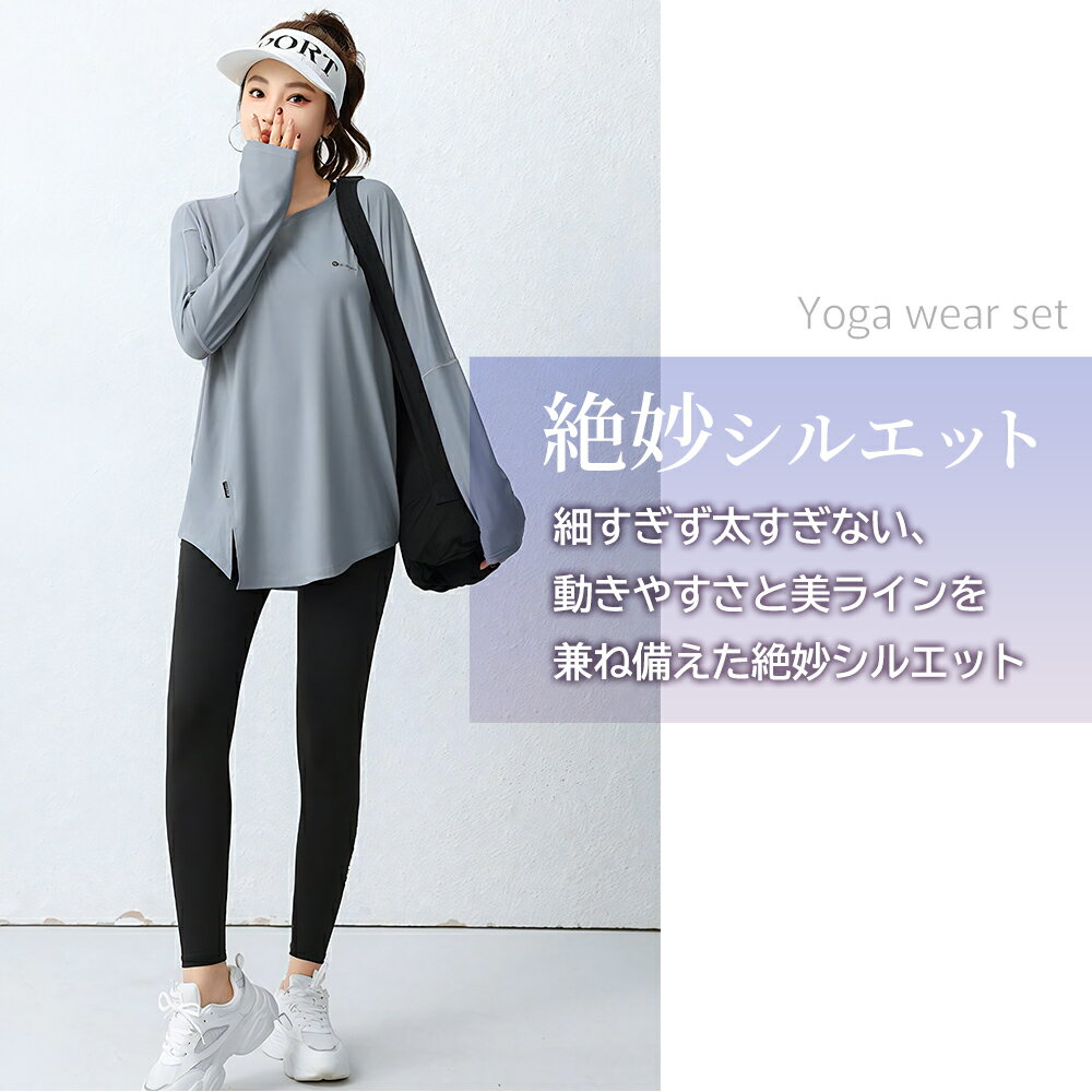21位 【ランキング1位獲得】エアリーヨガウェアセット長袖 ヨガウェア上下セット トップス レギンスセット 長袖 ヨガtシャツセット レディース ヨガトップスセット ピラティスウェアセット ジムウェアセット トレーニングウェアセット ロング丈セット 丈長め フィットネス ジム