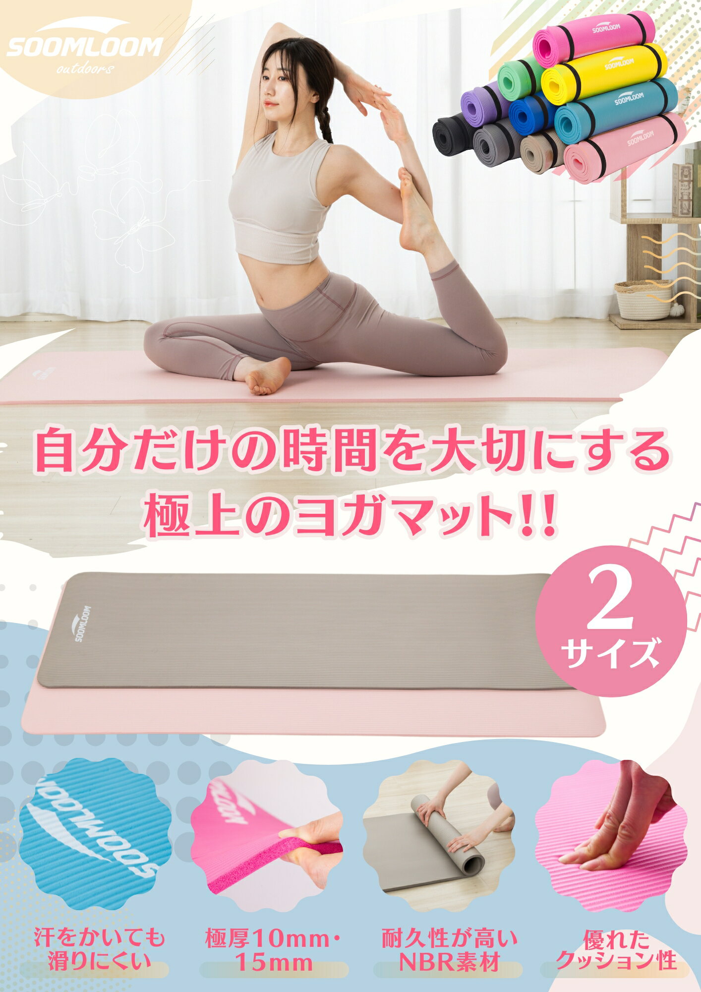 8位 【選べる2サイズ】Soomloom ヨガマット 10mm トレーニングマット ヨガ ピラティス エクササイズ マット 初心者 ゴム 収納バンド ケース付き ダイエット 上級者 極厚 器具 yoga ケース 腹筋 脚痩せ フィットネス ヨガ NBR ヨガマット 売れ筋