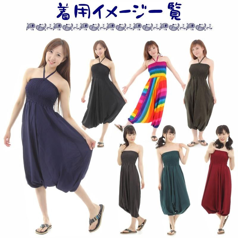 店舗名(OKIタイランドセレクション)レーヨン サルエルパンツ 無地 アラジンパンツ タイパンツ メンズ レディース 2way 総柄 オールインワン M