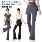 スカート付きパンツ レディース スカート一体型 ストレッチ スカート付 ブーツカット 美脚 フィットネス ヨガ スポーツ スカート長め スカート丈が長い